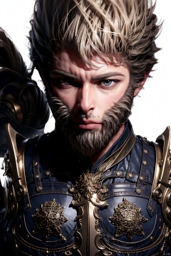 solo, simple background, 1boy, white background, closed mouth, upper body, male focus, armor, facial hair, shoulder armor, beard
