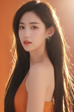 <lora:0828_04:0.4>,orange background, orange dress, 1girl,realistic,masterpiece, best quality, photorealistic, HDR,detail