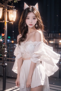 cheshire role play costume, role play, skirt, Chinese clothes, High Leg Raise, Fur Cape, Cat ears, Hair accessories, Red high heels, (masterpiece, best quality:1.2), 1 Girl, Solitary, ((Off-shoulder clothes)), ((night)), lantern, Candlelight, Deep in Wonderland,The moonlight falls like water,foggy room,The figure of the heroine is vaguely visible,Just like the fairy in the painting,Slender sexy legs,Very beautiful legs,Exposes a sexy,Large Breasts,美丽而又带着一丝mystery的色彩。Her face is beautiful and delicate,Like finely carved jade,Showing otherworldly beauty。The eyebrows are so beautiful,The waves in my eyes are like twinkling stars,Show the light of perseverance and wisdom。The bridge of the nose is straight,Cherry lip color,The slightly upturned corners of the mouth reveal confidence and calmness。Her face is chiseled,Skin like jade,Reveal healthy glow,like a fairy, She never eats fireworks in this world。Her makeup is light and delicate,No excessive embellishment,But enough to show her temperament and charm。Light-colored foundation brings out the transparency of the skin,A light eyebrow pencil outlines her perfect eyebrow shape,Eye makeup is eye shadow and eyeliner,Make her eyes brighter、Energetic。嘴唇涂上grace的口红,Adds a bit of charm and sophistication。她的衣服grace别致,Clothes fluttering,It seems like it will be blown up by the wind at any time,Drifting away。既不失grace,Also showed off her extraordinary skills。Swaying with her movements。Her hair was tied back casually.,Secure with a jade hairpin,A few strands of hair flutter gently in the wind,Add a touch of softness。Her figure looms in the fairyland,宛如一道Large Breasts美丽的风景线,Attracted everyone's concern。She seems like a fairy in wonderland,Large Breasts美丽、grace、mystery、Full of power。