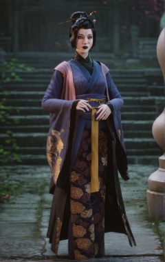 score_9, score_8_up, score_7_up, 8k, best quality, masterpiece, (ultra-detailed), solo, looking at viewer, full body, <lora:heishenhua-pony-Tanger-000010:0.8>, zzsimei,Fourth daughter,Navy blue Hanfu, 1girl, black hair, hair stick, hair bun, hair ornament, single hair bun, makeup, black lips, , by heishenhua, game cg,