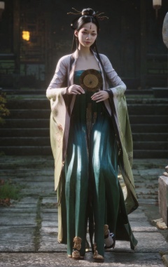 score_9, score_8_up, score_7_up, 8k, best quality, masterpiece, (ultra-detailed), solo, looking at viewer, full body, <lora:heishenhua-pony-Tanger-000010:0.8>,zzsanmei,third daughter,green dress,forehead mark, black hair,hanfu, long hair, hair ornament,   chinese clothes, facial mark,  hand fan, hair stick, long sleeves,, by heishenhua, game cg,