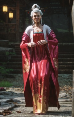 score_9, score_8_up, score_7_up, 8k, best quality, masterpiece, (ultra-detailed), solo, looking at viewer, full body, <lora:heishenhua-pony-Tanger-000010:0.8>, zzfuren,old woman,red hanfu,1girl, hair stick, old, fine art parody, hair ornament, long sleeves, parody, dress, chinese clothes, robe, wide sleeves, by heishenhua, game cg,