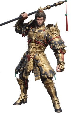 score_9, score_8_up, score_7_up, score_anime, 8k, best quality, masterpiece, (ultra-detailed), (white background,simple background:1.3), solo, full body:1.1), looking at viewer, <lora:heishenhua-pony-Tanger-000010:0.7>, dasheng, Monkey king, 1st clothes, by heishenhua, game cg, 1boy, male focus, armor, golden armor skirts, holding weapon, polearm, golden long stick,