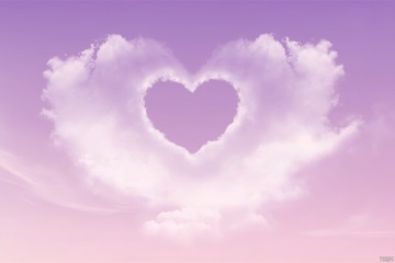 Purple gradient sky, filled with white clouds, creating a heart-shaped blank space