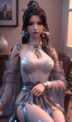 3D,masterpiece,(best quality),(makeup),official art, extremely detailed cg 8k wallpaper,((crystalstexture skin)), (extremely delicate and beautiful),(highly detailed),(collar),(facial_mark),(veil),((sitting)),(thighs),(1girl), (solo), (jewelry), (earrings),(black_hair),(long_hair),(hair_ornament),(handwear),(breasts),(long_sleeves)((upper_body)),(closed_mouth),(dress),(chinese_clothes),(multicolored_clothes),(multicolored_dress),(shiny_clothes),(city,indoor),(shiny_clothes),,((looking_at_viewer)),((Facing the camera)),, <lora:hipoly3DModelLora_v10:0.3>