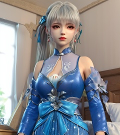 3D,masterpiece,(best quality),(makeup),official art, extremely detailed cg 8k wallpaper,((crystalstexture skin)), (extremely delicate and beautiful),(highly detailed),(face),(double_ponytail),(collar),(1girl), (solo), (jewelry), (earrings),(white_hair),(long_hair),(hair_ornament),(handwear),(long_sleeves),(breast),((upper_body)),(dress),(chinese_clothes),(multicolored_clothes),(multicolored_dress),,(shiny_clothes),(sash),(closed_mouth),(room,bed),((looking_at_viewer)),((Facing the camera)),, <lora:hipoly3DModelLora_v10:0.3>