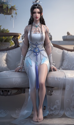 3D,masterpiece,(best quality),(makeup),official art, extremely detailed cg 8k wallpaper,((crystalstexture skin)), (extremely delicate and beautiful),(highly detailed),(face),(headdress),(1girl), (solo), (jewelry), (earrings),(black_hair),(long_hair),(hair_ornament),(handwear),(silk_ribbon),(breast),(wristband),(sitting),,,((full_body,whole_body)),(long_dress,long_skirt),(chinese_clothes),(multicolored_clothes),(multicolored_dress),(shiny_clothes:),(long_legs),((closed_mouth)),(sunshine, outdoor,sofa),((looking_at_viewer)),((Facing the camera)),(barefoot), (anklet),, <lora:hipoly3DModelLora_v10:0.3>