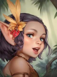 <lora:tangbohu-pony-real-v2:0.8>,score_9,score_8_up,score_7_up,rating_questionable,fantasy,cinematic lighting,1 girl,solo,cute,(short:1.2),small body,(shortstack:1.1),goblin,tribal clothing,chibi,hair ornament,jungle,high angle,looking at viewer,tribal body paint,feather neckwear,headband,close-up,head tilt,headshot portrait,side view,mouth open,