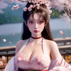 <lora:763-DA-仙逆-墨云:0.8>, (,1girl, ,best quality, ),looking at viewer,  ,ultra detailed 8k cg,ultra detailed background,ultra realistic 8k cg, ,masterpiece, (( , )),, ,science fiction,mole, ultra realistic 8k cg, ,    ,(,cherry blossoms, autumn leaves,perfect cherry blossom,   ), (cleavage),,