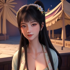 <lora:765-DA-金吾卫-刘小芷:0.8>, (,1girl, ,best quality, ),looking at viewer,  ,,ultra detailed background,ultra detailed background,ultra realistic 8k cg, ,masterpiece, (( , )),, realistic,science fiction,mole, ultra realistic 8k cg, ,     ,crescent moon, jasmine \(flower\),     (cleavage),,  (),