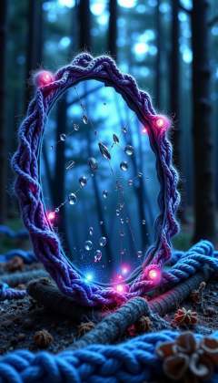 W00lyW0rld realistic digital painting, shattered mirror, reflections, northern lights, blue and purple hues, glass fragments, intricate details, glowing lights, dark forest, cold atmosphere, dramatic contrast, high definition, detailed texture, professional art