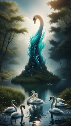 <lora:ElementWater:0.8>ElementWater Realistic digital painting of a serene pond filled with origami swans, soft sunlight filtering through the trees, vibrant green foliage, still water, pastel-colored swans, intricate folds, reflections on the water, shallow depth of field, soft shadows, peaceful atmosphere, vibrant and lively colors, impressionist style, dreamy, high resolution, detailed, artstation, concept art, illustration, wide angle, artbook, wallpaper, splash art, promo art, dramatic lighting, nature inspired, water,  wet, drops, (Masterpiece:1.3) (best quality:1.2) (high quality:1.1)