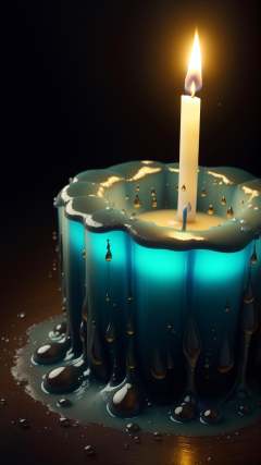 <lora:ElementWater:0.7>ElementWater Realistic oil painting, dripping candle wax, warm, orange and yellow colors, melting wax, detailed texture, rough surface, close-up view, focus on the candle, dark background, chiaroscuro, dramatic contrast, dimly lit, nature inspired, water, wet, drops, (Masterpiece:1.3) (best quality:1.2) (high quality:1.1)