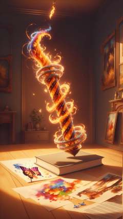 <lora:ElementFire:1>ElementFire Orange Slinky,Realistic painting, butterflies, book, emerging, colorful, detailed, textured, soft lighting, vivid colors, close-up, detailed texture, watercolor paper, oil paints, high resolution, (Masterpiece:1.3) (best quality:1.2) (high quality:1.1)