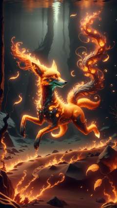 <lora:ElementFire:1>ElementFire yellow (orange:0.8) a fox made of autumn leaves running through a winter forest,3D render of a steampunk-themed submarine, exploring the Mariana Trench, detailed exterior, intricate machinery, brass and copper materials, glowing lights, dark blue and green underwater environment, particles of sand and seaweed, dramatic lighting, high contrast, cinematic composition, motion blur, 8K resolution, (Masterpiece:1.3) (best quality:1.2) (high quality:1.1)