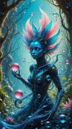 <lora:ElementWaterSDXL:1>ElementWater Surreal digital painting of a lush, glass garden invaded by bubblegum pink aliens, Crystal clear glass sculptures, Intricate topiary designs, Glowing, iridescent flora, Holographic butterflies, Invading aliens with vibrant, neon-pink exoskeletons, Bioluminescent features, Large, curious eyes, Expressive faces, Playful, curious behavior, Contrasting textures of smooth glass and rough bark, Vibrant, contrasting colors, Bright blue sky, Golden sunlight filtering through the glass structures, Dreamlike atmosphere, Whimsical, enchanting mood, Detailed, high-resolution, Artstation, Wallpaper, Promo art, Concept art, Illustration, Dramatic lighting, Sharp focus, Wide angle, Saturated colors, water, swirling, splash