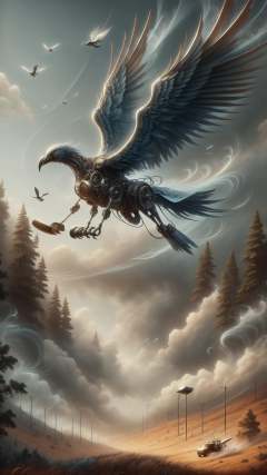 <lora:ElementWind:1.0> ElementWind polished silver teaspoon,Realistic oil painting of an ancient mechanical bird in flight, detailed feathers, brass and copper materials, steampunk aesthetic, intricate gears and machinery, vibrant rust and verdigris, soft natural light, outdoor forest setting, neutral background, dramatic shadows, atmospheric perspective, high-resolution, detailed texture, dynamic motion blur, vibrant colors, alive and soaring, awe-inspiring, (Masterpiece:1.3) (best quality:1.2) (high quality:1.1)