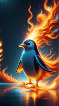 <lora:ElementFirePDXL:0.8>score_9, score_8_up, score_7_up, ElementFire Orange a curious penguin waddling across the icy terrain, fire, flames, blazing, (Masterpiece:1.3) (best quality:1.2) (high quality:1.1)