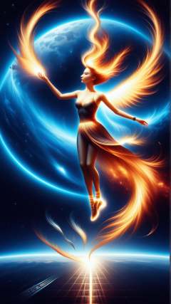 <lora:ElementFirePDXL:0.8>score_9, score_8_up, score_7_up, ElementFire Orange Digital art, ballerinas, space, moon, dancers, graceful, twirling, floating, full skirts, pointe shoes, night, stars, galaxy, nebulae, twinkling, soft, dreamlike, whimsical, magical, ethereal, nostalgic, forgotten, pocket watch, ticking, vintage, antique, gold, time, surreal, floating, mid-air, contrast, darkness, light, pastel colors, vibrant colors, intricate details, texture, glowing, atmospheric, moody, enchanting, captivating, illustration, concept art, detailed, painting, artstation, artbook, wallpaper, splash art, promo art, dramatic lighting, fire, flames, blazing, (Masterpiece:1.3) (best quality:1.2) (high quality:1.1)