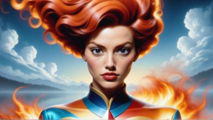 <lora:ElementFirePDXL:0.5>score_9, score_8_up, score_7_up, ElementFire Orange Time-lapse photography, Northern European, old, man, Medium hair, Top Knot hair, Faded afro, Red hair, Hair ribbond, Monolid eyes shape, Black eyes, Safety glasses, Full lips, Red lips, Square face, Golden makeup, Proud, Fit body, Feminine pose, Touching hair, Retro dress, Low-key lighting, Fog and mist, Evening, Dawn, vintage woodgrain background, Lake background, Canon EOS M50, Over-the-shoulder shot, Upside-down angle, fire, flames, blazing, (Masterpiece:1.3) (best quality:1.2) (high quality:1.1)