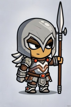 solo, 1boy, weapon, male focus, chibi, armor, helmet, polearm, spear