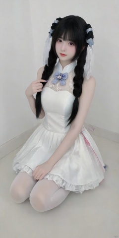 cpdd,One girl, Loli, long black hair, full body, sitting, In white pantyhose, Lolita,Show your thighs, spread your legs,Republic of China cheongsam