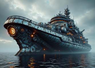 large drillship (subnautica), foldable mirrors,  curved windshield,  grille guard,  badge replacement, dark matter, cutting-edge,  pearl effect,