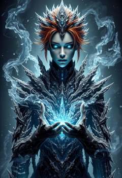 black ice, female midlife, tall, russian, blue eyes, diamond face shape with angular cheeks, tear ducts, light auburn slicked-back hair hair, astonishment, mana infusion, palms over a magical source, absorbing energy, priest, protection charm , empowerment stance, feet firmly planted, harnessing inner strength, otherworldly glow