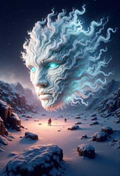 donmw15pFX floating wisp head made of flecked hydro troll,   oasis,snow-covered scene,,undertow,nocturnal creatures, <lora:FLux\donmw15pFX-000009.safetensors:0.8>,