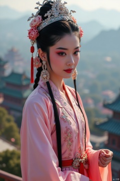 Ultra-clear picture quality, an epic blockbuster full of magical colors, a martial arts style in a mysterious oriental country, a girl standing on the top of the Forbidden City, her clothes are as delicate and smooth as porcelain, exquisite makeup, makeup, regular facial features, rich in details,