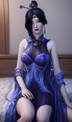 3D,masterpiece,(best quality),(makeup),official art, extremely detailed cg 8k wallpaper,((crystalstexture skin)), (extremely delicate and beautiful),(highly detailed),(face),(tiara),(1girl), (solo), (jewelry), (earrings),(black_hair),(long_hair),(hair_ornament),(handwear),(breasts),(sitting),((upper_body)),(long_legs),(closed_mouth),(long_dress),(long_skirt),,(chinese_clothes),(multicolored_clothes),(multicolored_dress),(shiny_clothes),(city,indoor,bed),,((looking_at_viewer)),((Facing the camera)),, <lora:hipoly3DModelLora_v10:0.3>
