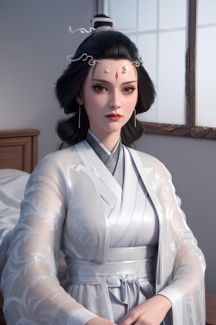 3D,masterpiece,(best quality),(makeup),official art, extremely detailed cg 8k wallpaper,((crystalstexture skin)), (extremely delicate and beautiful),(highly detailed),(face),(tiara),(collar),(hairpin),(wide_sleeves),(1girl), (solo), (jewelry), (earrings),(black_hair),(long_hair),(hair_ornament),(handwear),(breasts),((upper_body)),((closed_mouth)),(long_dress),(shiny_clothes),((hanfu)),(city,indoor,bed),,((looking_at_viewer)),((Facing the camera)),, <lora:hipoly3DModelLora_v10:0.3>