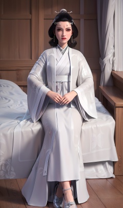 3D,masterpiece,(best quality),(makeup),official art, extremely detailed cg 8k wallpaper,((crystalstexture skin)), (extremely delicate and beautiful),(highly detailed),(face),(tiara),(collar),(hairpin),(wide_sleeves),(1girl), (solo), (jewelry), (earrings),(black_hair),(long_hair),(hair_ornament),(handwear),(breasts),((sitting)),((full_body,whole_body)),(closed_mouth),(long_dress),(long_skirt),,(chinese_clothes),(multicolored_clothes),(multicolored_dress),(shiny_clothes),(robe),(gown),(hanfu),(city,indoor,bed),,((looking_at_viewer)),((Facing the camera)),(shoes),(cloth_shoes),(flat_shoes),, <lora:hipoly3DModelLora_v10:0.3>
