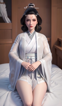 3D,masterpiece,(best quality),(makeup),official art, extremely detailed cg 8k wallpaper,((crystalstexture skin)), (extremely delicate and beautiful),(highly detailed),(face),(tiara),(collar),(hairpin),(wide_sleeves),(1girl), (solo), (jewelry), (earrings),(black_hair),(long_hair),(hair_ornament),(handwear),(breasts),((sitting)),((upper_body)),((closed_mouth)),((long_dress)),(shiny_clothes),((hanfu)),(city,indoor,bed),((thighs)),,((looking_at_viewer)),((Facing the camera)),, <lora:hipoly3DModelLora_v10:0.3>