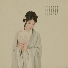 Photograph traditional Chinese painting style woman in Hanfu elegant pose holding a round fan with floral design intricate hair ornaments soft lighting serene expression delicate floral embroidery on her robe muted colors historical ambiance poised and graceful demeanor cultural heritage historical elegance., macp style, 1girl, macp background, hair bun, solo, hanfu, black hair, long sleeves, ribbon, holding, closed mouth, upper body, black eyes, looking to the side, makeup, looking away, macp-fan, realistic, red lips, holding macp-fan, simple background, hands up, looking down, updo