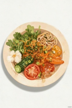 zhenkonji, cucumber, no humans, food, vegetable, tomato, still life, food focus, fruit, white background, carrot, spring onion, simple background, onion, leaf, plate