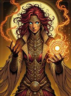 donmc0m1cm4g1cfx magic, (magic forming text "Good morning SHQ!":1.3),female rune mage  Exercising spell shaped like Web of brown aqueous orc and air magic