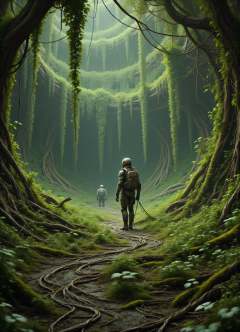 DonMN0Hum4nFX, no human, vines, sfw,  happening,  dreamy, depth of field, creation engine, photorealistic, scumbling, pop art,   no blur, absurdres, radical, irony #full-frame dslr, f/1.4, shutter speed 1/2 sec, iso100, white balance tungsten, exposure compensation    "-2.5 ev", manual shooting mode, symmetry and balance, focus mode continuous, spot metering"