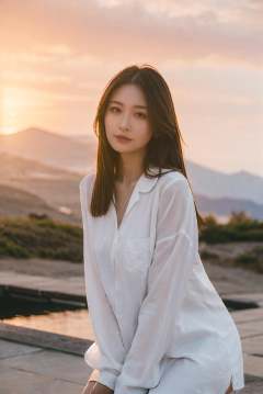 1girl,solo,loungewear,standing,looking at viewer,outdoors,((sunset)),mountain,((portrait)),Highly detailed,(ultra-detailed),(best quality,masterpiece:1.5),<lora:Film Simulation:0.6>,film simulation,<lora:AV-神﷿美舞:0.4>,