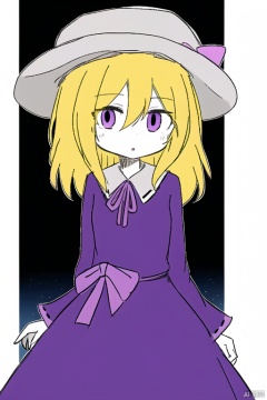 white skin,mob cap,purple dress,white headwear,looking at viewer,1girl,solo,long sleeves,usami_renko,mob_cap,maribel_hearn