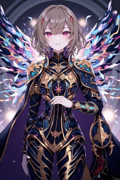masterpiece,magic,girl,dazzling,peculiar robe,wings,machinery,AI,(full body),(upper body),(top quality),pop art,extremely detailed,extremely detailed CG,(high resolution),highly detailed,(high quality),(perfect quality),(glitchcore colors),(masterpiece, top quality, best quality, beautiful and aesthetic:1.2),