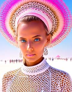 Sophisticated sensual tableaus, this katya clover wearing burning man burner fashion, at burning man festival in the desert, (candy cotton clouds:0.9),surreal, acid trip, magic mushrooms, lsd dmt candyflip, happy, joy, drunk, big eyes, crazy face, psychedelic, small brest flashing, natural face,, elevates eroticism to aesthetic heights, every image a seducing sublime masterpiece.