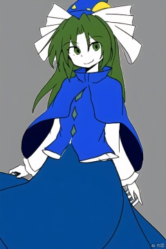 white skin,mima (touhou),1girl,solo,blue capelet,long sleeves,wizard hat,smile,blue headwear,looking at viewer