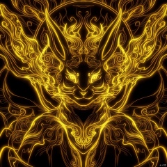 photograph golden line art ethereal rabbit with glowing eyes surrounded by intricate golden wings dark background with swirling patterns golden hourglass in the background mystical and mystical ambiance delicate and serene expression intricate details golden hues mystical ambience delicate lines egyptian-inspired., eastern-mythology, solo, looking at viewer, golden-line, closed mouth, halo, rabbit, full armor, full body, no humans, black background, animal focus, straight-on