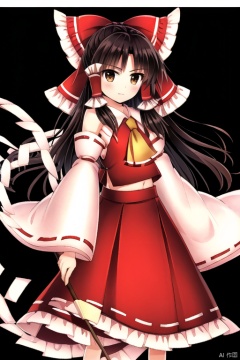 simple background,hakurei reimu,1girl,hair bow,red bow,detached sleeves,solo,hair tubes,simple background,looking at viewer,frilled bow,red skirt,sidelocks,wide sleeves,bare shoulders,blush,yellow ascot,ribbon-trimmed sleeves,hakurei_reimu,hair_bow,red_bow,blackeyes