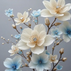 with a darker shade of blue in the middle. The stem of the flowers are a darker brown