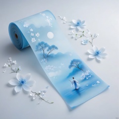 dotted with trees and a moon in the sky. The scene is set against a white backdrop