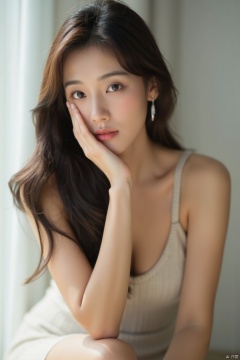 Dark brown hair、Light brown eyes、Japanese actress、 Lady、I am about 40 years old....、(Intricate details:1.2)、(Which is more expensive????:1.4)、 (Ultra-high resolution:1.2)、Ultra-high resolution、(fine adjustment)、(Detailed facial features)、Hmph、8k resolution、D cup size breasts、Long Hair、Large windows、Extravagant space、relax、、,Full body photo、Head to toe shot、Beautiful legs、Knitted camisole dress、Beautiful legs、A refreshing room filled with sunlight、she, household items, (plant:0.8), Fashion Hub, Very detailedな, Very detailed, Realistic, Hourglass Shaped Body, Obscene pose,、、私cry a lot、tears、person on the left、White wall、White floor、diagonally from below、please lift your chin、テーブルの上にsit、relaxした表情、Pose of Weakness、(auraroid photo:1.2)、From outside the window、Transparent painting、8k、32K、Highest quality、(Details of both eyes)、1 person、elegant、(Loose dress :1.4)、sunset、sit、(Low Angle、From what angle are you looking at this???:1.2)、Hilarious、Leaning against a wall、Turn around and show me your back、