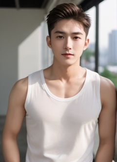 best quality,hyper quality,8k,ultra detail,realistic,RAW photo,dslr,soft lighting,film grain,Fujifilm XT3,Screen Space Refraction,high detailed skin,natural skin texture,Canon 5D,high details,(masterpiece),(best quality),ultra hi res,realistichandsome male,young guy,asian male,blurry background,shirt,blurry,white shirt,1boy,male focus,hands in pockets,realistic,upper body,<lora:男生:0.6>,