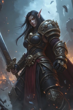 World of Warcraft, human, female warrior, sword, armor, dynamic pose